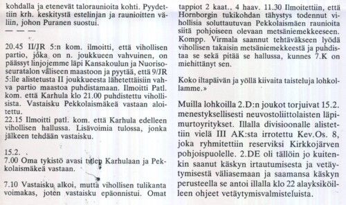 Lähteen tienhaarassa käytiin koko päivän 15.2. ankaria taisteluita. Vilho Tervasmäki (6./JR 14) kertoo:
