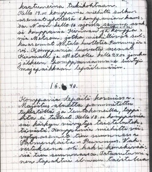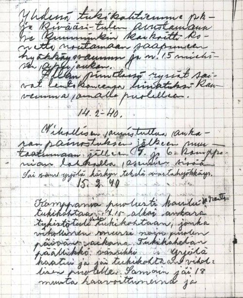 Seuraavassa otteita talvisodan 4./JR 5. sotapäiväkirjasta Karjalan kannakselta,
